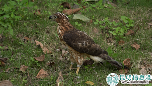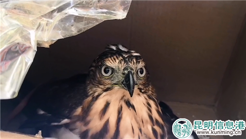 森林公安民警当即将鸟带回单位。经云南濒科委司法鉴定中心鉴定,这只鸟为国家二级保护动物凤头鹰,展翼长80CM,身长42CM,体重500克。