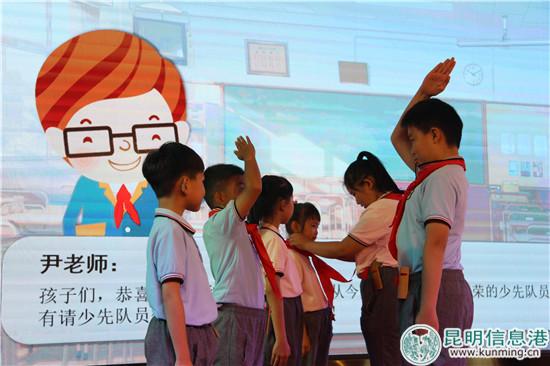 情景剧一幕“今天我光荣加入少先队”。实习记者庄园 摄