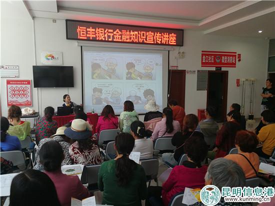 恒丰银行昆明分行针对不同人群金融知识的薄弱环节和金融需求,面向金融消费者,尤其是低净值人群和广大网民,提供获取金融知识的途径和防范风险的技能,引导消费者合理选择金融产品和服务,自觉抵制网上金融谣言和金融负能量,共建清朗网络空间,使得金融的发展更好地满足人民日益增长的美好生活需要。