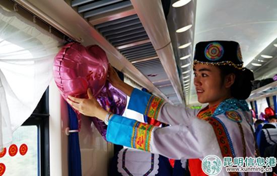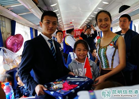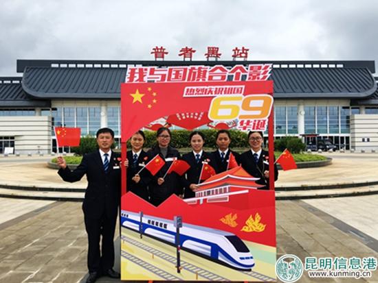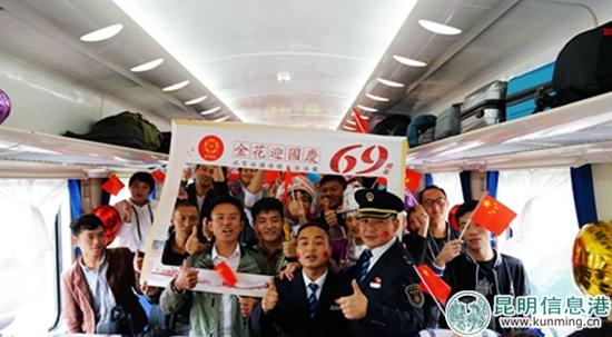 另外,今年国庆节,中国铁路昆明局集团在昆明、大理、普者黑等车站和各趟旅客列车上开展“我与国旗合个影”“祝福祖国”等庆祝活动,客运员与旅客互动联欢,共同祝福伟大的祖国繁荣昌盛。