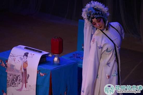 演出现场,云南省京剧院国家一级演员李静和国家一级演员朱福同台搭戏,圆润细腻的唱腔、古典的配乐、精致的妆容、梦幻的舞台设计,以及刺绣、珠钗、折扇等中国元素,搭配舞台上的袅袅白烟,传统昆曲的魅力被展现的淋漓尽致。情绪从欢喜到悲戚,景物由艳丽到残败,水袖婉转间以声传情,观众们不由被杜丽娘和柳梦梅生死离合的故事所感动,掌声连连。