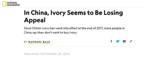 2018年1月起,除了有更多中国消费者直接表示不会购买象牙制品以外,中国象牙的实际购买量也减少了。禁令下发前的一项调查显示,超过四分之一的受访者表示他们在过去的六个月里曾购买过象牙制品。而根据最近的调查结果,这一数字减少至12%。