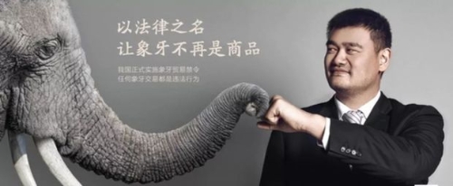 中国全面禁贸象牙,姚明呼吁公众勿触犯法律。图片来源:野生救援WILDAID网站