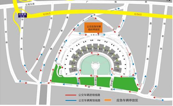 (1)展馆周边现有2条线路拟临时调整进入展馆内环。