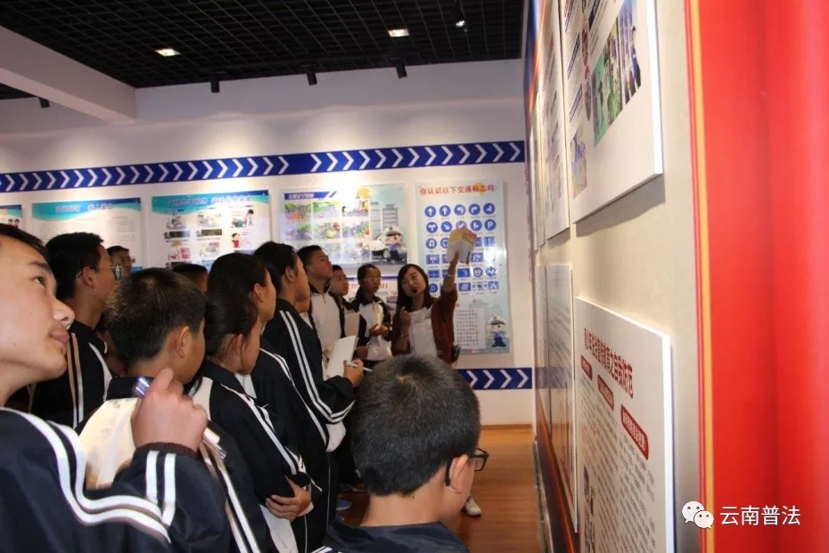 活动分为参观展厅和法治讲座两个部分,同学们一进入展厅就被墙上一块块展板吸引,在讲解员的讲解和引导下依次参观了序厅、禁毒篇、法治篇、安全篇等展区,了解了毒品的危害、未成年常见违法犯罪行为及自我防范方法、网络安全、校园安全等内容,学习了“共产主义战士”雷锋、“当代保尔”张海迪、纳西人民的好儿女杨丽胜、和志虹的先进事迹。