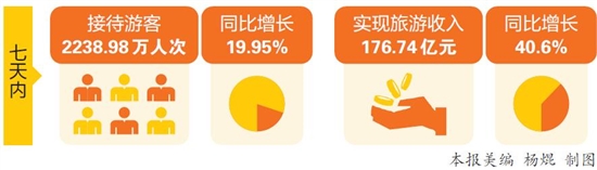 今年国庆假期,7天时间云南接待游客2238.98万人次,同比增长19.95%;实现旅游收入176.74亿元,同比增长40.6%,假日旅游市场繁荣稳定、亮点纷呈。