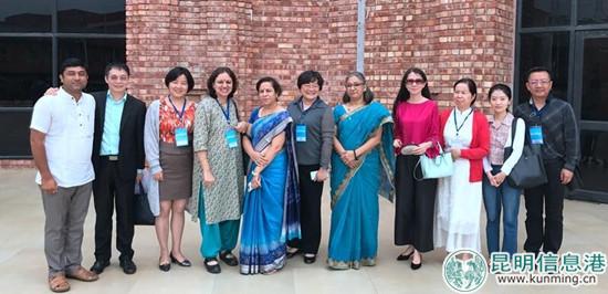孟加拉国研究所副所长郭穗彦(右一)和印度研究所副所长邓蓝(左一)与参会学者合影