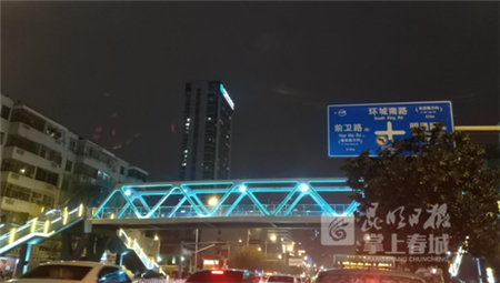 另悉,由官渡区新建的“环城南路与明通路节点人行天桥”目前已接近尾声,正在进行灯光亮化工作,已有市民”尝鲜“于晚间通过天桥出行。
