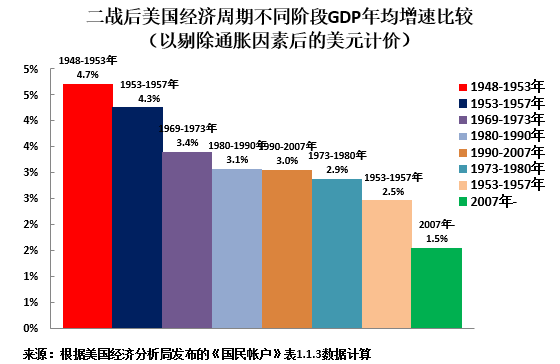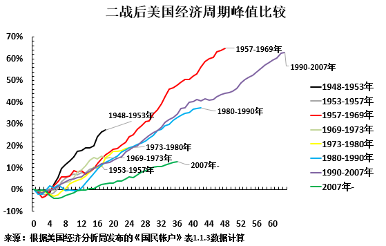 ·二战后美国经济周期的GDP年均增长峰值是1948-1953年的 4.7%;