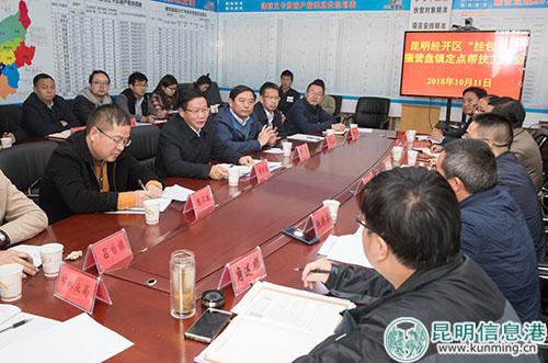 走访调研结束后,当天下午,在撒营盘镇政府召开昆明经开区“挂包帮”定点帮扶工作会议,听取撒营盘镇脱贫攻坚工作情况汇报,举行昆明经开区帮扶资金捐赠仪式,李河流代表昆明经开区向撒营盘镇捐赠了300万元帮扶资金。