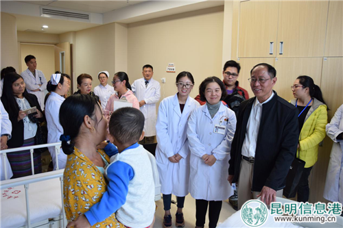 缅甸驻昆明总领事吴梭柏一行在昆探望缅甸患儿。院方供图