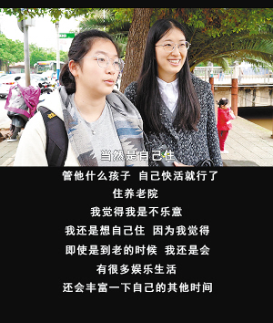 马莎说:“年轻时就想有自己的生活,老了也想相对独立、自由一点,住养老院有更多自己的时间,也不会太麻烦子女。”