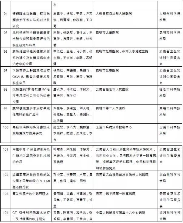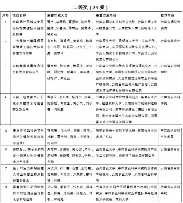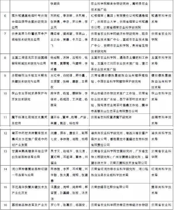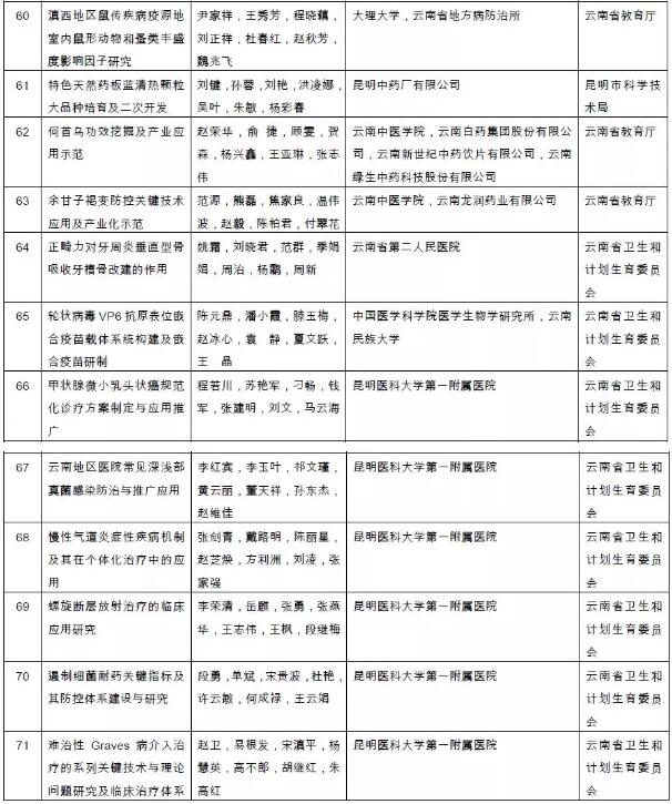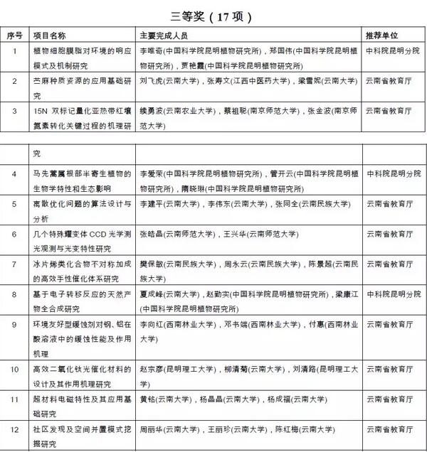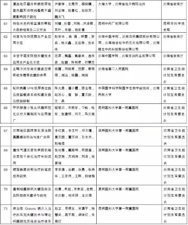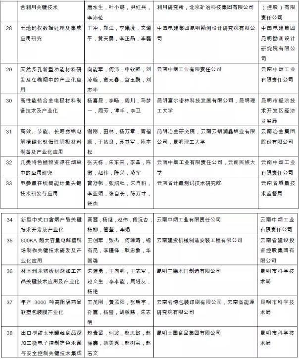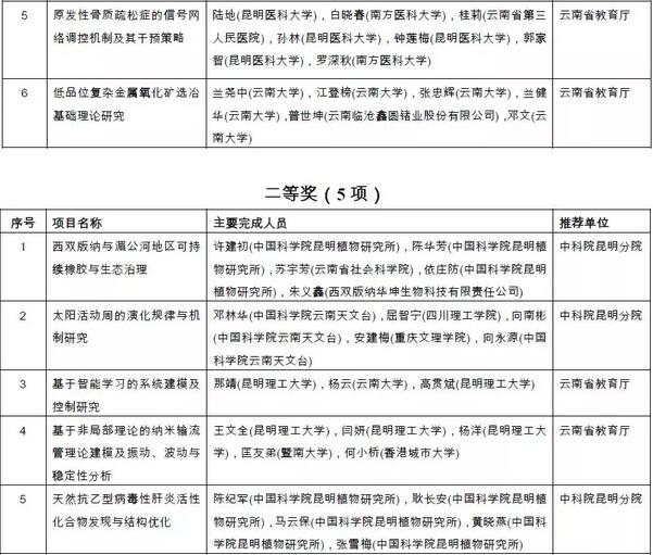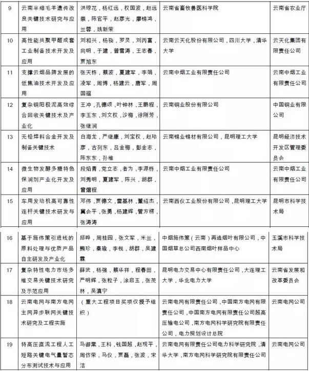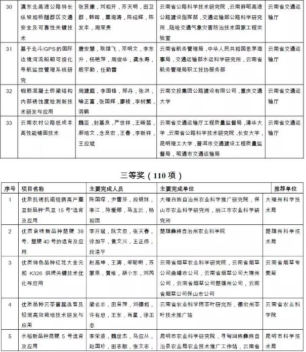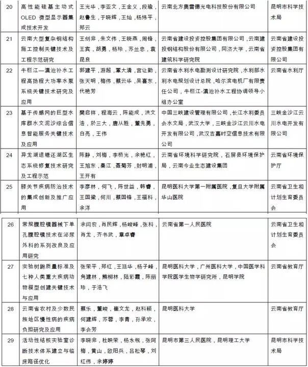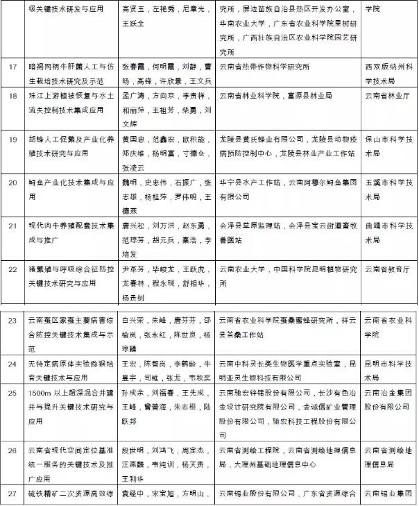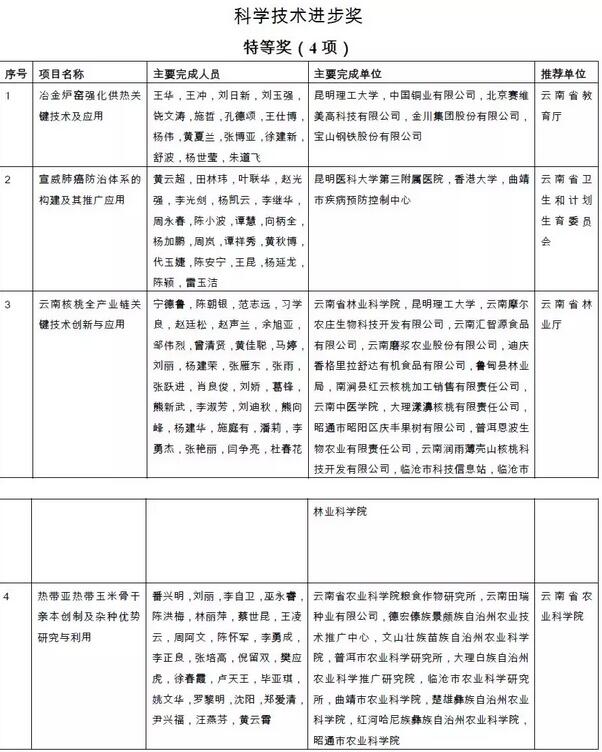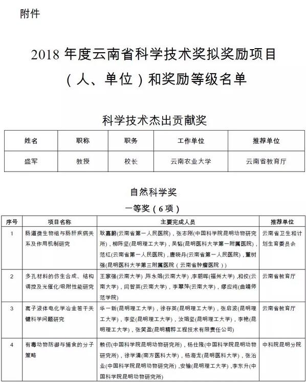 附件:2018年度云南省科学技术奖拟奖励项目(人、单位)和奖励等级名单