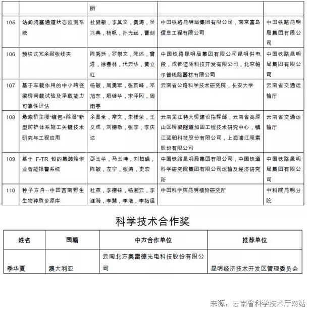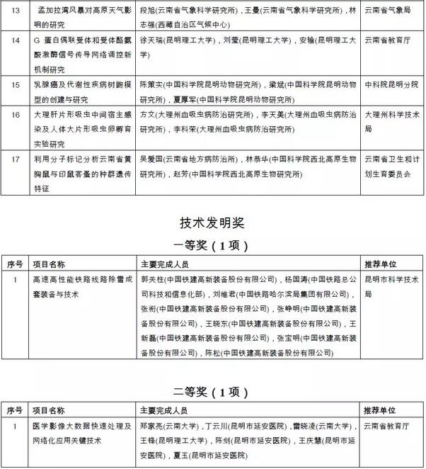 6686体育讯 云南省科学技术厅15日发布通知,对2018年度云南省科学技术奖拟奖励项目(人、单位)和奖励等级共110项进行公示,其中高铁线路除雪设备、医学影像大数据快速处理技术拟分获技术发明一、二等奖。
