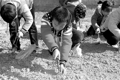 学校开设二十四节气课程,学生在自己的种植园里播种。