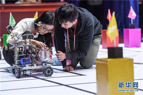 10月21日,在位于安徽合肥的中国科学技术大学,“Red Brick”队参加机器人比赛。 新华社记者张端摄