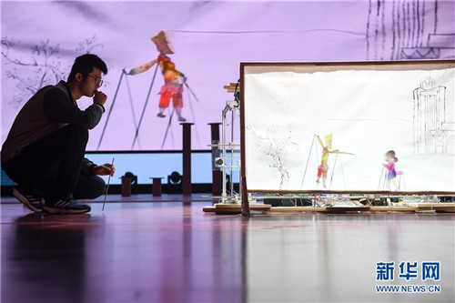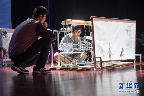 10月21日,在位于安徽合肥的中国科学技术大学,“人五成影”队带着皮影戏机器人参加比赛。 新华社记者张端摄
