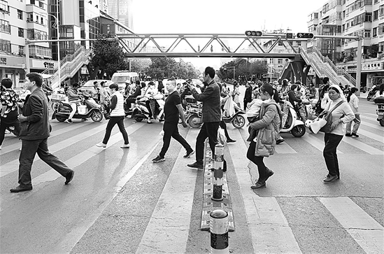 据报道,为了改善主城区的道路交通,昆明市去年就提出要在行人过街需求旺盛的路段增设人行天桥,分别位于彩云北路南部客运站、西北三环3座(海源寺、自卫村、海屯路与西三环口)、东三环金色交响小区、东三环王旗营蔬菜批发市场、前兴路望城坡、沣源路龙头街地铁站、大树营立交光明路口、环城南路与明通路口、农大西校区沣源路、西福路西华园段、彩云中路斗南地铁站、广福路盘龙江节点、日新东路海贝中英文学校门前、人民路3座(青年路口、华山西路口、翠羽路口)、云大医院门口、龙泉路金太阳电脑城路口等。(春城晚报 记者杨质高 文 高伟 摄)