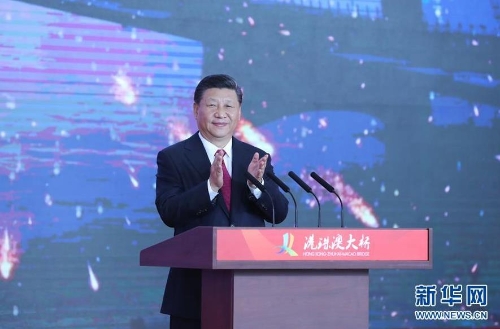 10月23日上午,港珠澳大桥开通仪式在广东珠海举行。中共中央总书记、国家主席、中央军委主席习近平出席仪式并宣布大桥正式开通。新华社记者 鞠鹏 摄