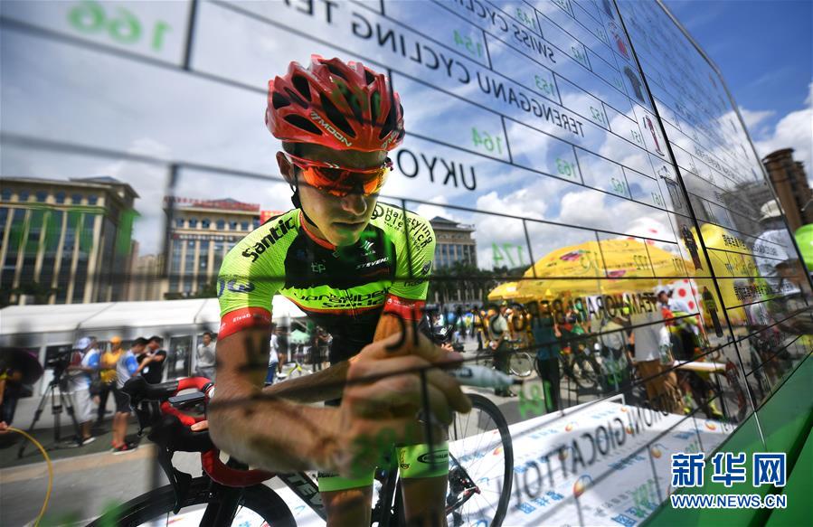 10月23日,奥地利福拉尔贝格·森地客车队车手谢林在起点处签到。 当日,2018环海南岛国际公路自行车赛开赛。第一赛段为儋州绕圈赛,全程90公里。 新华社记者郭程摄