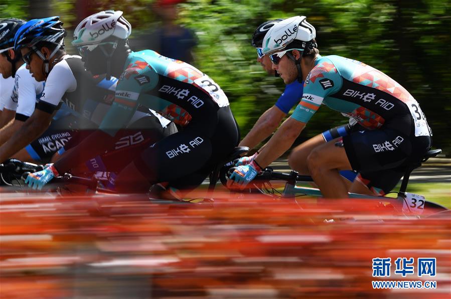 10月23日,车手在比赛中。 当日,2018环海南岛国际公路自行车赛开赛。第一赛段为儋州绕圈赛,全程90公里。 新华社记者郭程摄