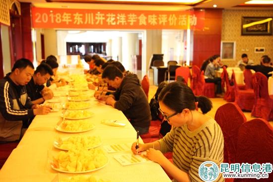 10月17日,云南省农业科学院经济作物研究所和昆明八角地农业开发有限公司开展了“2018年东川开花洋芋食味评价活动”,组织36位美食专家和市民评委,在东川丽晶大酒店把东川阿旺、箐口、会泽大海等16个不同地点种植的开花洋芋蒸熟后,分别进行了仔细品尝、打分、投票,最后得出结果,东川李子沟村两个不同地块时挖出的洋芋,分别获得了冠军和亚军。