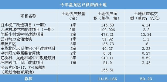 截至目前盘龙区已供应的土地
