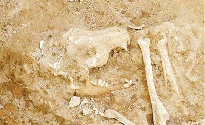 考古人员在陕西周原遗址发掘出的动物遗骨 新华社记者丁海涛摄
