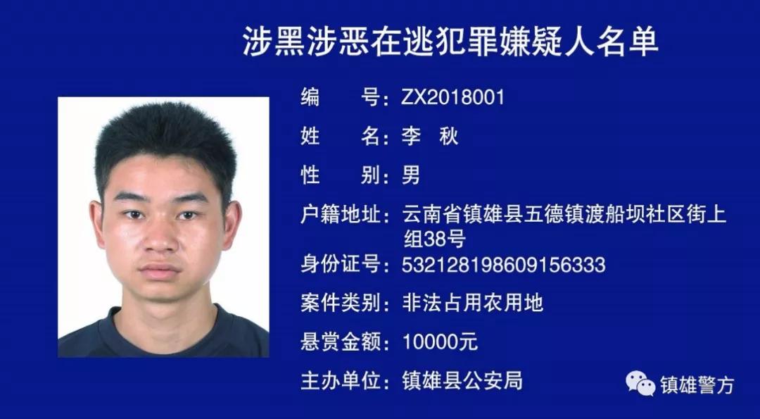 李秋等5人悬赏名单
