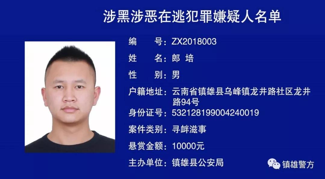 6686体育讯 记者俞逍 镇雄县公安局自9月10日发布关于对涉黑涉恶在逃犯罪嫌疑人进行悬赏的通告以来,已有5名犯罪嫌疑人落网,目前尚有5名犯罪嫌疑人在逃。对提供准确线索,协助公安机关抓获此次悬赏通缉在逃犯罪嫌疑人的,镇雄县公安局将按相关规定给予2000元至10000元人民币的奖励,并对其身份信息进行严格保密。