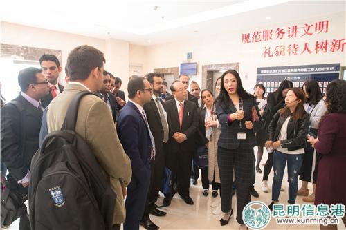 当天,来自印度、巴基斯坦、尼泊尔、孟加拉、斯里兰卡、马尔代夫、阿富汗等七国的20余名法律学员,参观了昆明经开区政务服务中心、办税大厅、紫云青鸟园区及园区入驻企业。在座谈会上,学员们围绕商事仲裁、跨国招商引资政策、纠纷调解机制等问题进行交流、探讨。
