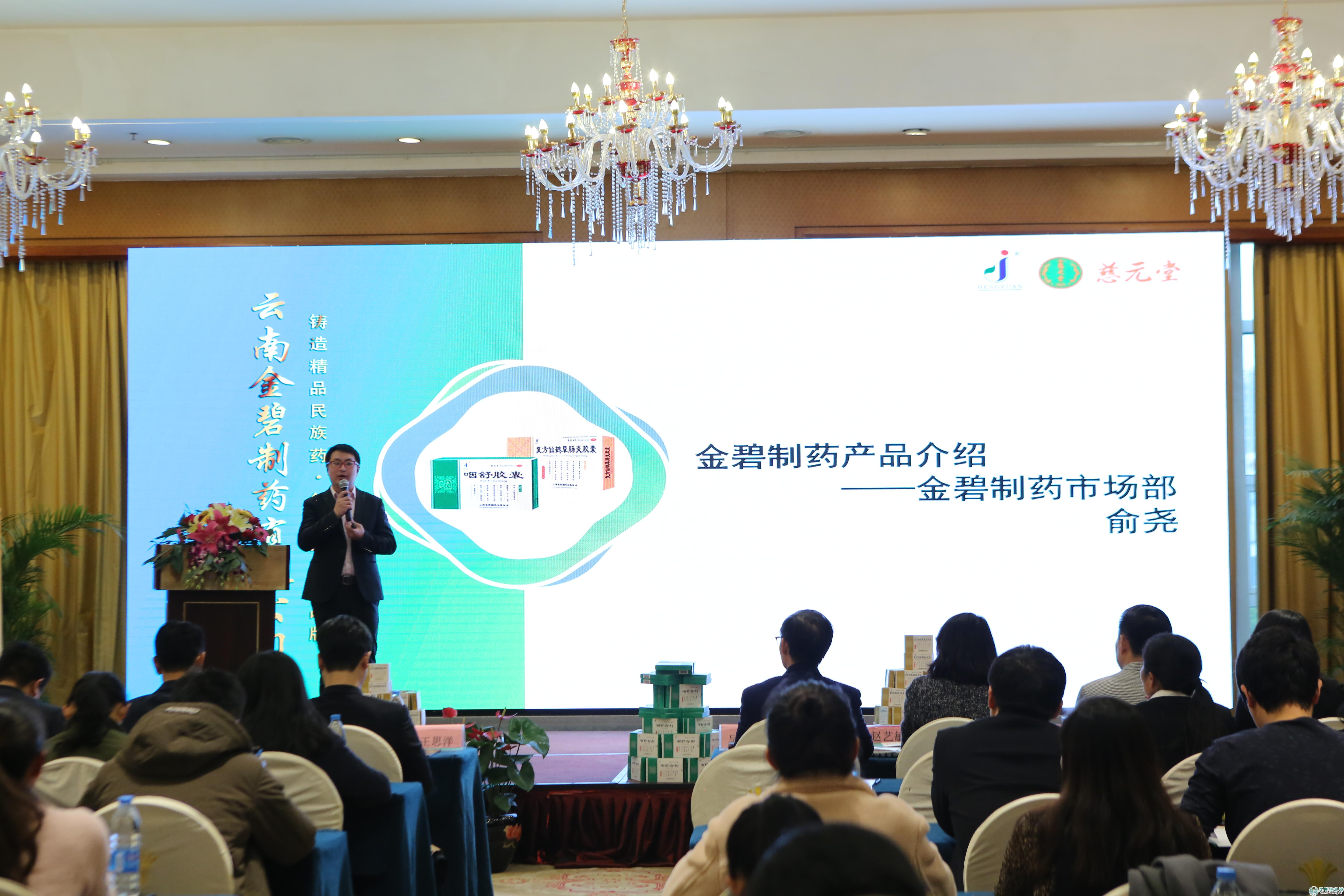 金碧制药市场部俞尧介绍旗下产品。供图