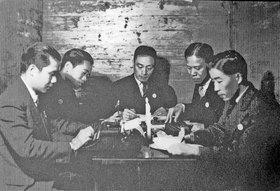 抗战时期,中行员工坚持工作的场景。