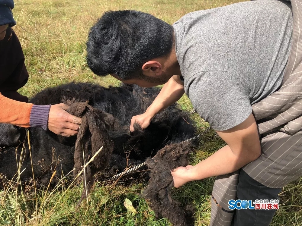 记者:你刚刚和牦牛来了个抱摔,看来采牛绒也是挺危险的。在这个过程中,你害怕过吗?
