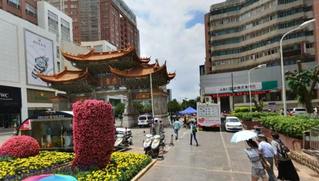三市街是昆明中轴线核心地段,以金碧路为界,北侧南屏步行街、南侧金碧广场,商业气氛浓厚,人流交织。