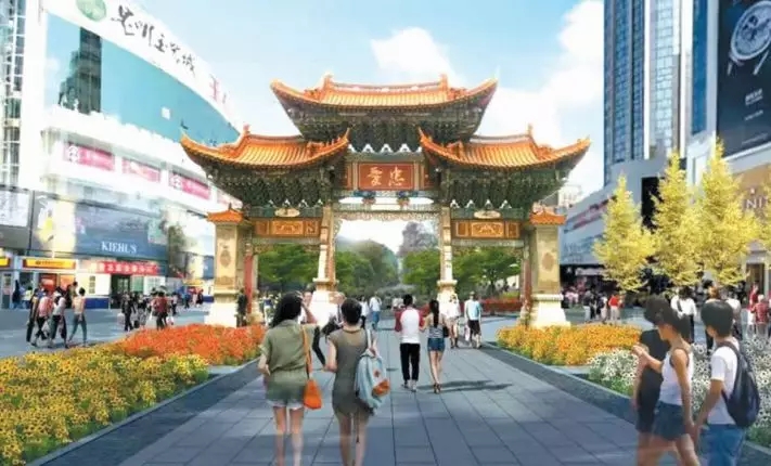据悉,三市街的地面将采取对称式绿化,将街道划分成不同的功能空间,增设历史文化元素,届时将形成花草树木错落有致、色彩缤纷、四季争艳的城市美景。从金碧广场向北望去,依次是三市街、忠爱坊、南屏广场、正义路、万寿无疆坊、五华山、圆通山这条中轴线,延续传统中轴线文化的同时,提升该片区人居环境品质。