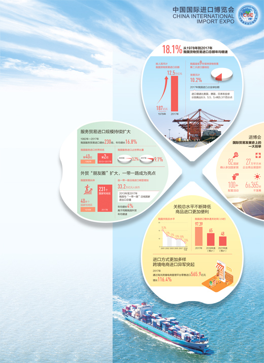 2017年,我国是增长最快的全球主要进口市场,进口增速比美国、德国、日本和全球分别高出8.9、5.5、5.4和5.3个百分点,为世界各国企业提供了广阔的市场和宝贵的合作契机。