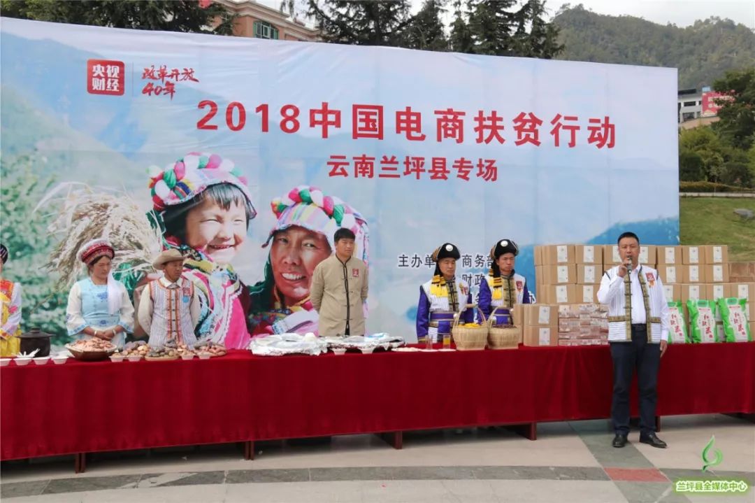 11月4日,由财政部、商务部、国务院扶贫办、中央广播电视总台联合主办的“改革开放40年·2018中国电商扶贫行动”走进兰坪白族普米族自治县,网络直播推介沧江红米,拓宽边疆少数民族地区农特优产品销售渠道,助农扶贫。