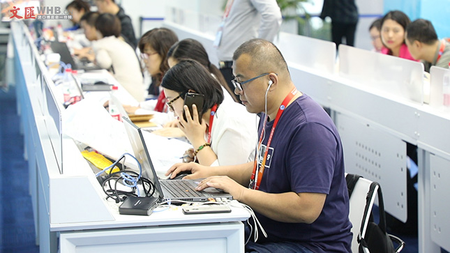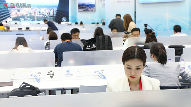 首届中国国际进口博览会的前沿阵地——进博会新闻中心里,每一个忙碌的身影,都很美丽。