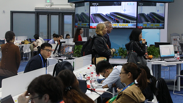来自630多家境内外媒体和65个国家以及港澳台地区的进博会4100多名注册记者,在这里向世界讲述进博会的精彩。(视频/图片陈龙)