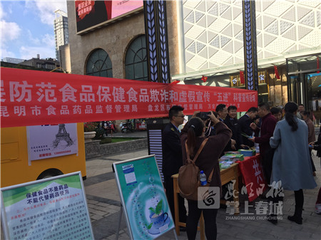 昆明市食药监局药品总监杨子江介绍,昆明是云南省食品、保健食品生产大市和流通集散地,今年来,昆明市食药监局以开展食品、保健食品欺诈和虚假宣传专项整治为契机,大力实施“食品安全战略、让人民吃得放心”,努力强化保障老百姓舌尖上的安全。这次活动以“防范欺诈虚假宣传,维护自身消费权益”为主题,开展内容丰富、形式多样的进社区、进乡村、进网络、进校园、进商超“五进”科普宣传教育主题日活动。通过多种形式,提示食品、保健食品欺诈和虚假宣传的样式套路,普及和传播食品、保健食品科普知识和安全常识,进一步提高公众对食品、保健食品虚假宣传的风险防范意识,保障消费者健康权益。