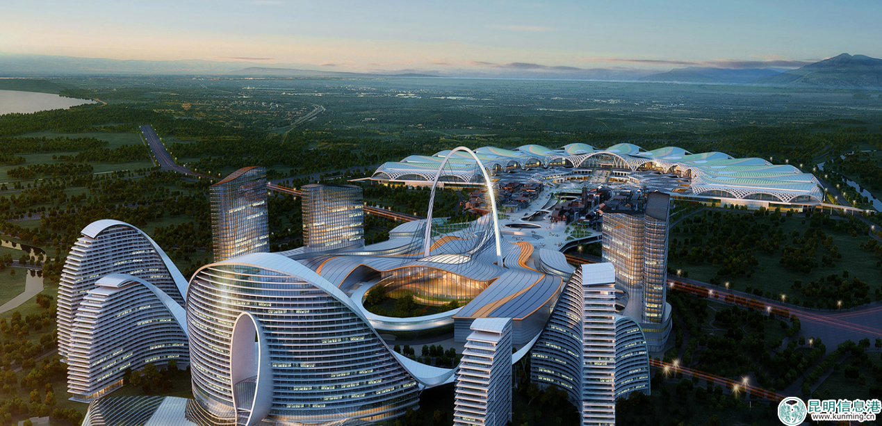 滇池三个半岛区域占地面积约8.84平方公里,区域总投资估算约464亿元,是昆明唯一深入滇池腹地的规模化半岛区域,重点打造环滇池生态圈,总计建造了占地约5600亩湿地公园,构成远近各异的生态宜居景观。三个半岛核心区——会展中心区,其中滇池国际会展中心是集展会、酒店、商业、休闲于一体的重大标志性工程。这座鸟瞰犹如一只开屏斗艳孔雀的会展综合体用地2331亩,建筑工程投资约287亿,是全国第三,西南第一的会展中心。