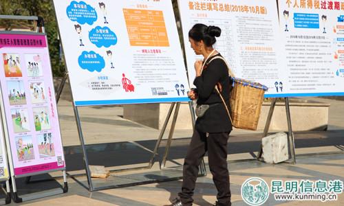 启动仪式现场,晋宁区通过摆放宣传展板、发放宣传资料、接受群众咨询等方式,开展法治宣传活动,普及法律知识。宣传内容涉及与群众生产生活密切相关的《宪法》、《刑法》、《中华人民共和国未成年人保护法》、《反恐怖主义法》、《森林法》、《环境保护法》等法律知识。活动现场共摆放展板153块,计划发放宣传资料79000多份。