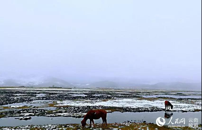 11月7日,立冬,云南香格里拉迎来入冬以来的第一场雪,森林湖泊、山间田野堆满了积雪,迪庆高原呈现出一派银装素裹的景象。