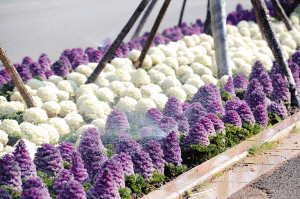 “看,卷心菜也种进绿化带了……”近日,眼尖的市民在西福路看到,很多工人正在更换花卉,其中一种很像卷心菜的植物也在其中。记者在呈贡区锦绣大街等多条道路也看到,沿街绿地内都种植了形似“卷心菜”的花卉。从外观上看,这些植物外层叶子绿白相间,外形和颜色与卷心菜并无太大区别,如果俯视看,就会发现外层叶片里包裹着白色、紫色、红色或黄色的花蕊,绽放得像花朵一样。
