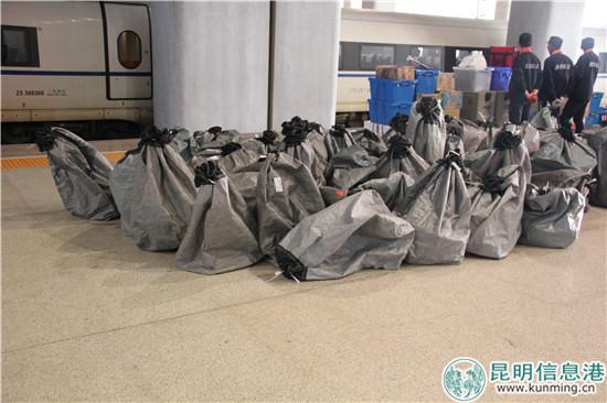 昆明南发往贵阳北站G286次装运的物资