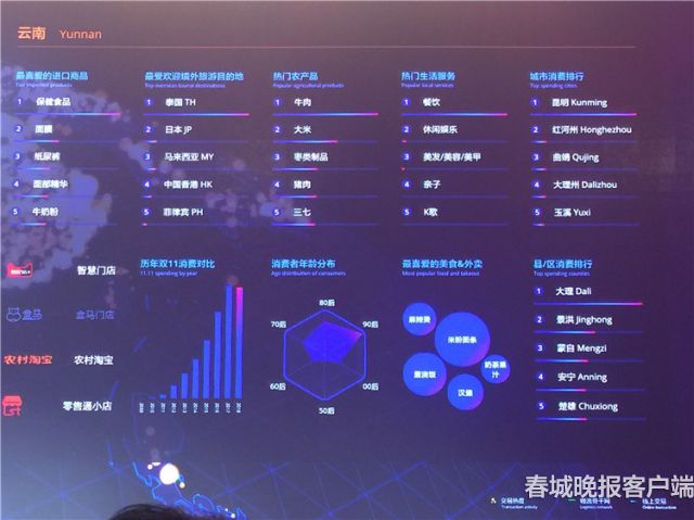 今年电商脱贫是双11重要元素之一,阿里也首度在电子大屏上公布阿里巴巴脱贫基金双11电商脱贫大数据,从基础设施、金融扶持、人才培养、 脱贫样板线等方面解读当前新农扶贫成果。在云南,元阳红米项目是阿里在全国推行的十大样板县。自元阳基金成立后,阿里帮扶1000户农户、建立3000亩示范基地。从种植、运输、包装、销售等全链式帮助元阳红米成为一个全国知名的县域品牌。