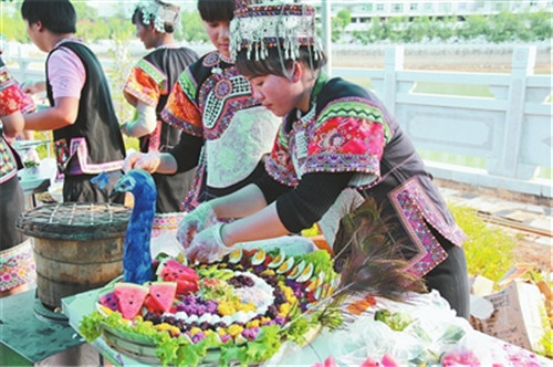 活动在总计320桌的长街宴开宴中达到高潮,各地游客推杯换盏尽享哈尼美食,哈尼姑娘身着美丽服饰唱起了祝酒歌,向游客们表示感谢。在外求学的甲寅镇村民许影荣趁着节日也回到了家乡,他告诉记者:“家里来了很多客人和我们一起庆祝节日,我真的非常开心。我们也准备了很多特色的美食来招待客人,虽然比较辛苦,但都是值得的。”(红河日报 记者李易)
