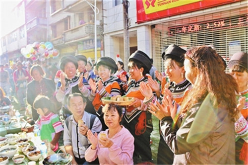 穿上民族盛装,唱起民族歌曲,男女老幼跳起欢快的舞蹈。11月9日至10日,红河县举办“十月长街宴”活动,庆祝哈尼“十月年”。