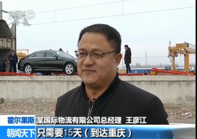 新疆中盛国际物流有限公司总经理 王彦江:过去海运,包括现在也在用的海运,一共是需要60天。我们这条线开通以后只需要15天到达重庆。经过这次测试以后,客户将把大量的车走这条线路,计划明年有2万辆从这条线路上走,这样会给客户节约大量的资金成本 。